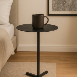 Scandinavian round metal side table with plinth base, standard height, no wear – 1 Black L 40 x W 40 x H 6 (Copy)