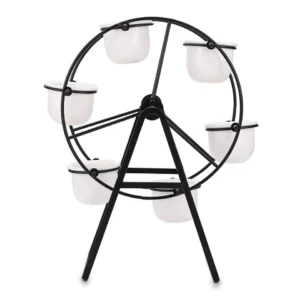 Ferris Wheel Metal Planter Stand | Rotating Mini Flower Pot Holder | Decorative Succulent Planter for Home & Office Table Décor (6 Pots Included)